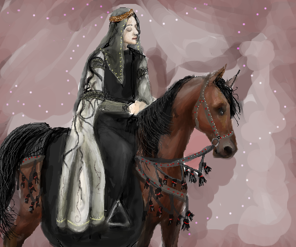 Agreed, the horse is nicely sketched, with her flowing skirts this is will lovely.