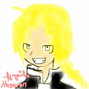 Edo-kun is my love :'D I adore him so. And I'm guessing you watch the Japanese one, judging from your name :B GOOD. English one suuucks D: (but, it's "Hagane no Renkinjutsushi", "Hagaren" is just the shortened title)Let's see, well, this is really good for a first try, but here's a few tips: Try to make thinner, smoother lines, and lineart the hair, maybe? Pen tool is good for lineart. Try not to use the airbrush tool for coloring, it tends to look messy. He needs some eyebrows ^__^;; |