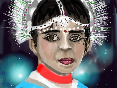 linkthat image was a basis, trying to do realism, with my surrealist backgrounds.... but, she reminds me of a monkey, dont have enough energy to detial the necklace and headdress....