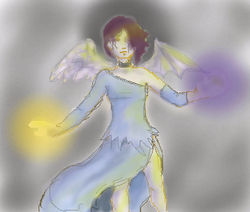 She looks so EVIl o.o; Makes me wanna run away in fear xD;; I like the dotty-type-thing. -sweatdrop- Wow, I'm smart. But yeah ^^;; I wish I was that talented. The blood looks REALLY good, but I tink something looks weird with her fingers O.o; Oh well, could be me ^^; Good Job, Keep up the good work.