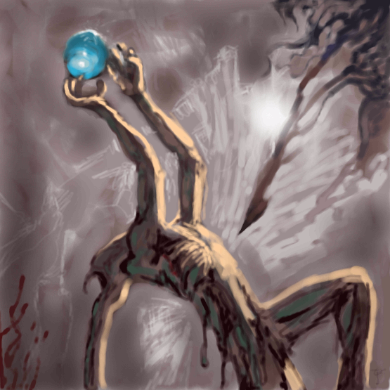 I think it's great... in an abstracty sort of way. It immediately made me think she has a fractured soul.... split personality... something.... Anyway, I like it.