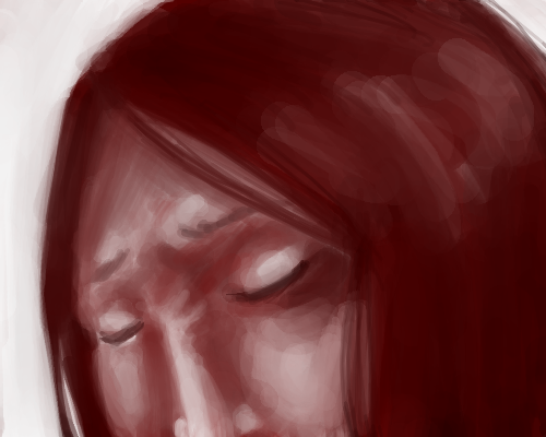 This is great, I bet that if you added more highlights in the hair and on the face, this would be excellent. But knowing your style a bit, this monochromich color scheme is intentional!