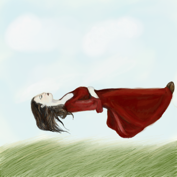 Pretty cool, but I see what the problem is with the dress... It should be more voluminous on the bottom, with more of a trend in the billows of the fabric to the right of the picture, since the wind is blowing in that direction. You could also work on the angle at which the person in the picture is viewed, to make it more dynamic and interesting... Also, there should be more detail in the sky and to the stalks of the high grass below...You know, this kind of reminds me of those scenes from gladiator where Maximus is all floain' around and shit :D