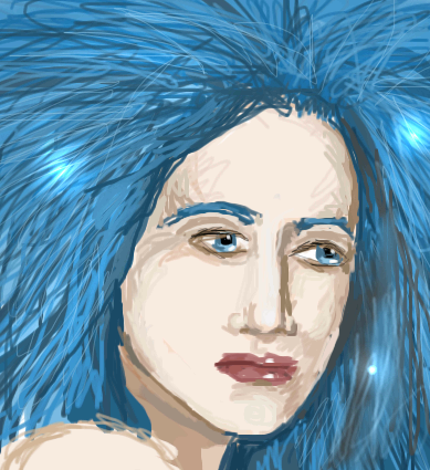 Mmm, her face is very beautiful, I like her glossy lips so much! Beautiful blue haired lady, I love the structure of her face and the brush style. Bravo! <:D|XOD|