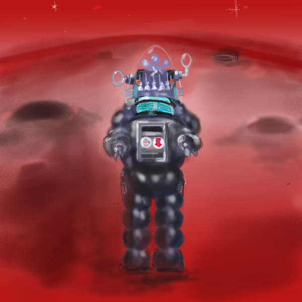 This is what talking about abstract does to a painting. The front guy was half way done before.. this happend I see red people!