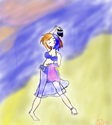 I rather liked the balcony. :3 A little shading and it would've looked fine. Otherwise, it's a nice picture; some anatomy errors, but I think you'll eventually get over them after practicing more.