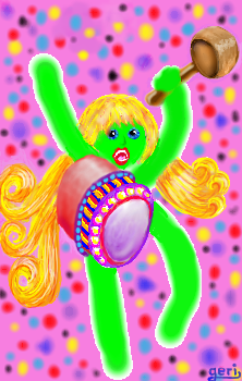 The alien Bear is a visitor to Mars and he loves to play with drums and loud things generally, plus all things sparkly. In fact he loves to have fun and to be full of joy. He spreads joy too..just by being himself, which is nice....as do some people. |