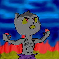 Yes, i know how bad this is, but A) this is my first drawign and B) i'm only in junior high so it's not like I'm an expert or anything. I am, however, extremely proud of the background, i think it's very cool looking. This is Rayne, bye the way, and she's the Akurei no Ojo, or the princess of the demons. I'm writing a story about her.Second Edit: Heh, you can see a major difference between the two, or at least i can. The text Midnight.Rayne represents which alter ego was painted. Rayne has tons! She's an android and a computer genius, and she actually programmed computers that were self aware, and had emotions (This is set in the future, but she was still the first person to do this) And since she's an android, she can be linked to the computer at all times through a sort of mental link, so she ends up with a sort of spilt personality thing. Yes, I know i said she's the demon princess, and she is. Her brain is a human brain, (demon brain, actually) and her body is an android body. The mind that she has is the reincarnate of the original demon princess. Lol, it's really complicated, neh? It's a strange story, and it kind of combines high tech stuff and fantasy stuff. Lots of ancient egyptian mythology too ^_^