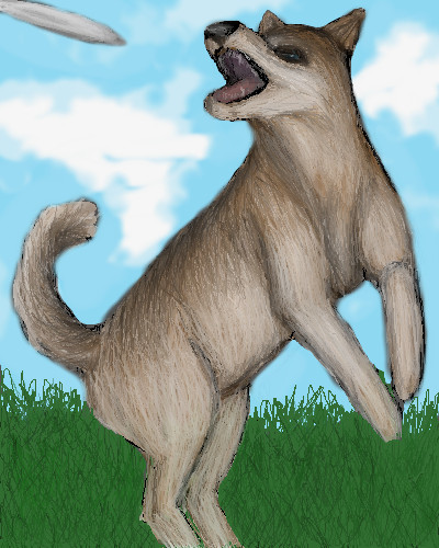 I never saw this one before. Cute doggie.. he's gonna catch that frisbee. |