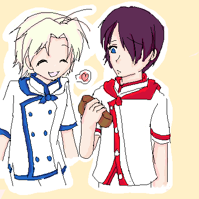 Azuma Kazuma and Tsubodzuka (not a main character) from Yakitate!! Japan! <3 I love this anime X3 I've been planning to draw this for a long time D: I'm used to drawing Kazuma but Tsubodzuka is hard (and so is his name!) I'll probably run off to adobe and finish coloring this seperately cause yeah.