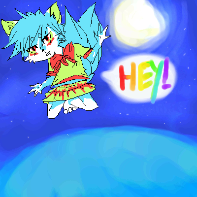 I like the starry night background! ^-^ And the foxgirl is real cute~ Love the yellow ribbon!