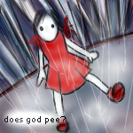 when i was a kid, i asked lots of questions."does god pee?" as i grew up, i was asked lots of questions. "pee? WTF?" when i turned agnostic, the questions mutated. "is there even a god to pee down the rain?"