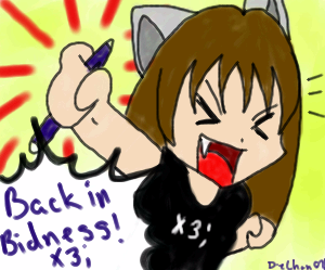 Yay! I got a tablet yesterday because my other one died a long time ago! So now I'm back in Bidness! But... I can only draw on weekends or noghts that I don't have homework... I MUST bring my grades up....