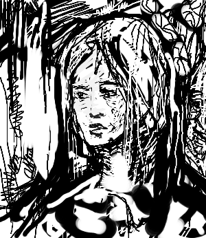 I really like it, especially the circular lines on her stomach! :D This reminds me of linocuts, definitely! (I made a horsie one in elementary school art class. xD) Does her left breast have light blue on it...?