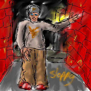 hmm, it's kewl...looks like the city is burning and he's just smiling around...or...maybe that goofey look in his eyes tells he's done something...brr psycho