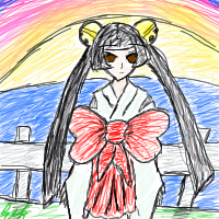 Ooh yes, looks even better with a bow, I'm always getting mixed up on the obvious, so now I can actually tell, once and for all, that gold thing is hair. If I was more observant I could have known before, but there you have it.Still amazing, just more so.