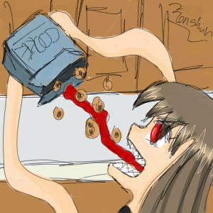 XDDDD Dude, yew are drawing some funneh pictures! Well, anyway.. -grabs cookies- HA! WATASHI'S COOKIES! -eats- -you come over and try to snatch cookies- BAAAAAAH!!! -hissesssssss-XD, ok got a little carried away with that one.. Anyway, nice! Hana-chan |
