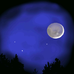 I think this is quite nice. The moon looks realistic. Perhaps some suggestions of the moonlight reflecting on the tree edges in places? Also, the sky could blend away into a gradient of the blues... It's very nice!