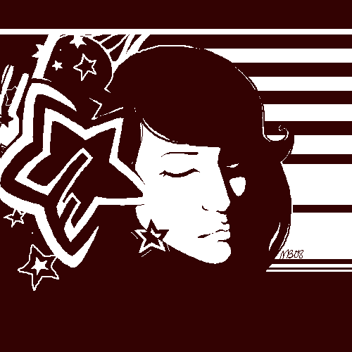 I dig the graphic quality to this. The scrambled parts on the figure are interesting, it ties into the background well. Also, hips are grand, both in this piece and in the general sense.