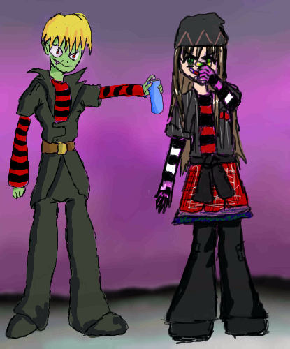 XD Yum.. gummy worms.. I like both of your outfits. |