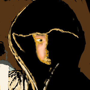 Steve's a spooky lookin little critter. This is a very interesting picture. He looks like some kind of evil little monk. |