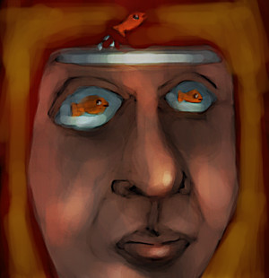well the red and orange is supposed to be the dangerous and active environment and the blue is the cold piercing fear I feel in my heart. and my head is just salad lol.