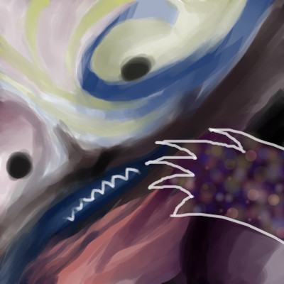 I really like this. There's the suggestion of a face, or maybe a skull, but you've focused more on the color and feel of the marks. |