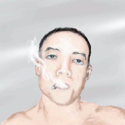 hmm he loos like a surfer who is annoyed with the palm trees?
