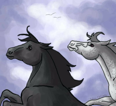 I really don't know how to shade/highlight horses' hair, so I'm not gonna try. I think this is done.
