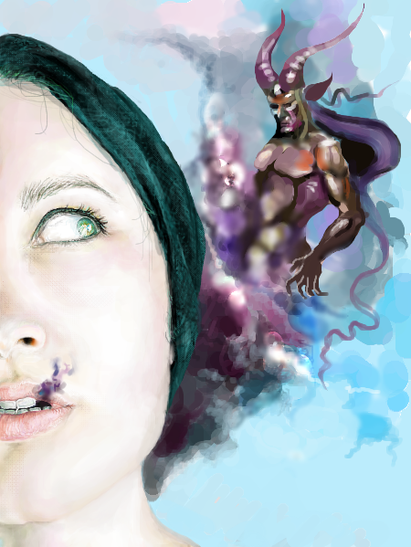 This is so fantastic! Her expression is so intense, and that eye, I just want to lick it. Very very well done.