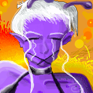 Today was a very very sad day. I did not utter the word "breast" once. I did not utter any words, favorite or otherwise. Today was the day of silence, which made it even more serious and sad thinking about the reasons why we weren't talking, not to mention a colleague in my art class moving back across the ocean to her father's country. T_T And so, on this sad, silent day, I send you a picture of a sad blue bondage fairie with her mouth tied shut. For what reasons though, I do not know. >:) It puts a bit of light back in my day.