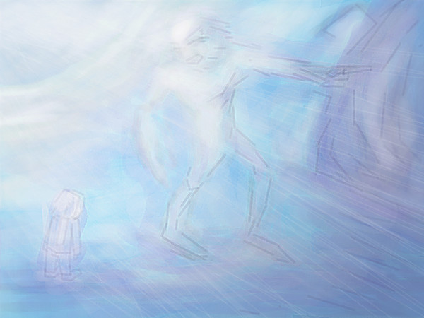 This looks very 'cool', It looks like the ice is blowing and so he looks foggy, nice effect.