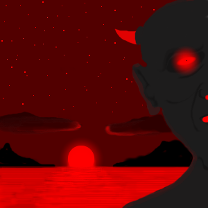 The river, Styx.. spooky looking and that glowing red eye is a frightening sight. Dang! Another good one.