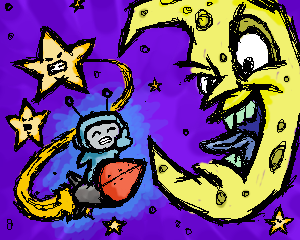 AHAHAHA!!! *cluching sides from pain of laughter* Oh I really like the moon! But the little space dude has my heart, LOL!