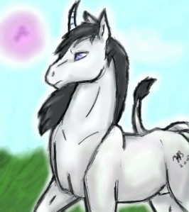 Male unicorn wondering at a fairie (will be added last ;) ) just something popped into my head.... I'd finish now but I gotta go to school... *grumbles and saves*