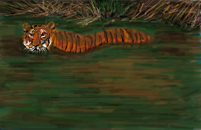 I don't see draws of tigers in the water very often! I love the colors you used in the water. Great work with the tiny details of the tiger too! c: |