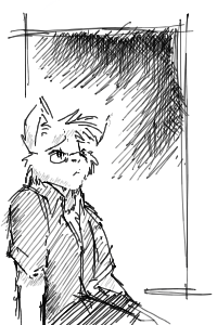 Hah, yay, humaness. Brave boy. (Don't quit with the furries. Not like I need to tell you that.)I like his nose. |