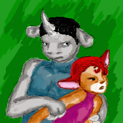 >_< The hair was a pain. I need to study guy hair styles more. Don't like the hair much, but I'm proud of the Fox and the Rhino! ^-^ No matter where Rhino goes with his adopted fox brother, there's gonna be a fight or an arguement.