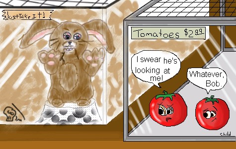 the poor bunny rabbit ..... he hasnt eaten in weeks...hey whet do you feed a pet tomato?..