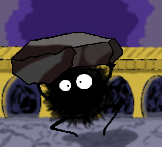 A small soot spirit, carrying coal...(Took me a while to get him there, but he's finally done! X3 )