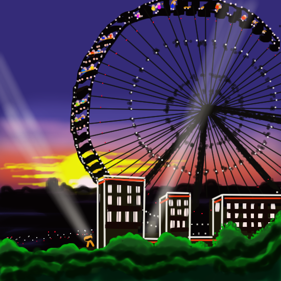 I love this! Very beautiful coloring and draw! I would visit this place eventhough not a fan of amusement parks! This is very inviting!:))