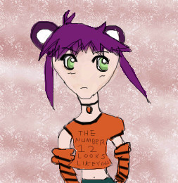 Shes naked..o_o'Well I think you should stop using that mouth poise This piece would look nicer without it. And maybe..dont make the ears almost the same color as the hair. I didnt notice them at first. I agree that her necks a little long.. There should probably be a little more shading on the face. But now dont think I'm some Bish, listen to my advice I'd like to see what you cann do with it. |