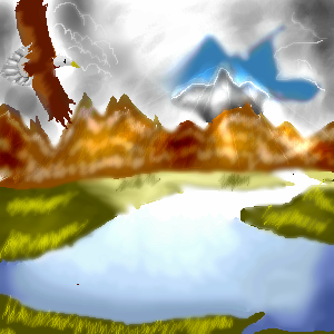 YAY YAY YAY Im Done! Finnaly! Woow 2:43 mins. Woow Thats my longest picture I think. Well Im really like it ceot the mountains. They look flat. >_< But Im still Very happy with it.! Almost forgot the rays of light!