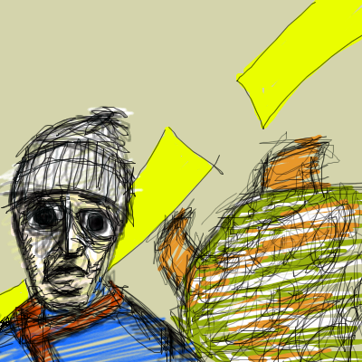 He appears to be a soldier, and I think the heavy dark sketchiness really adds impact to that. Nice.