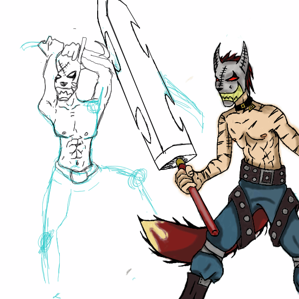 – latest 4:and touch up smooth out the line work... and color it ofcourse... this is for deformed.... hope it's good enough... hope I left you enough room.... and sweetcell... I promise to put some shin into that blade this time...... bye.... xD aahhh... said the fox.......yeah, the shading sucks but I have to learn one thing at a time... cause