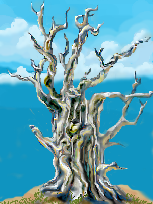 The Silver Tree stands alone....Gradually it turned from wood to stone..... The stone they say turned to rust... They wondered then, would it turn to dust?