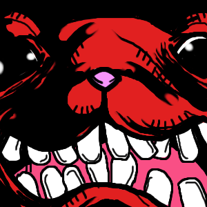 i like its emotion. almost something of a poo eating grin, or something mean. good color work on the dark/light parts.