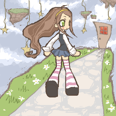 Oh, I love this picture! ^_^ She's so adorable, I love the colors, and flowy hair. Oh, clouds!! |