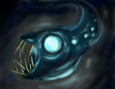 Hereeeee Fishy Fishy Fishy...o_0 thats not the fish I was expecting lol *throws back into deep blue* I like how the blues blend and the teeth and how it feels as though its coming at me