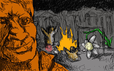 hehe! i forgot how much fun this game is >.< man its like 10 times more fun cos we have awesome tools, the guys face is neat cos its all orange but like its illuminated from the fire right? okay so he's not orange from the fire..he's made out of carrot apparently. glad i asked